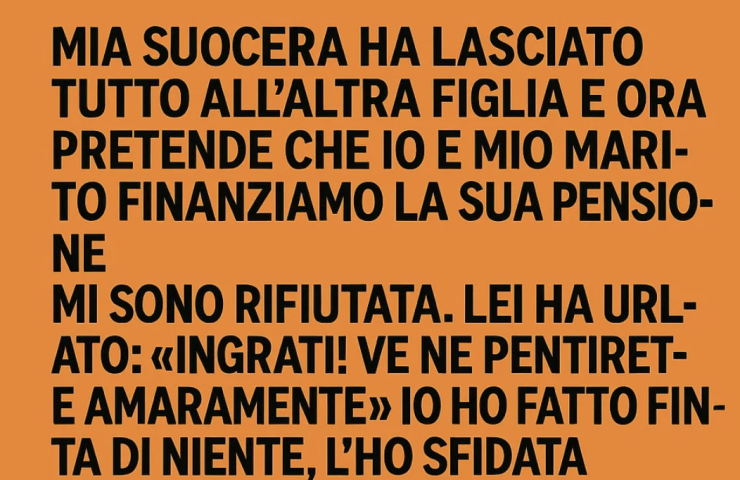 Mia suocera ha lasciato ogni cosa all’altra figlia, e adesso pretende che io e mio marito le finanziamo la pensione.
