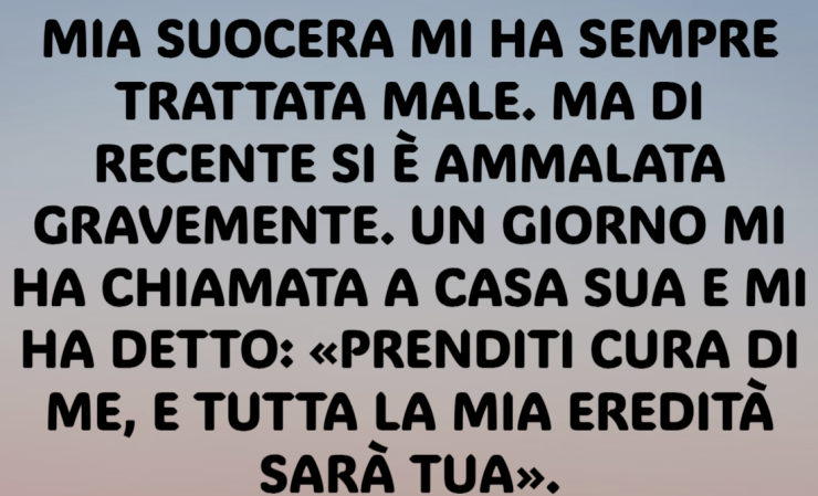 «Prenditi cura di me, e tutta la mia eredità sarà tua».