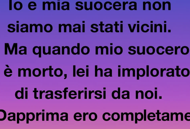 Io e mia suocera non siamo mai stati molto legati. Ma quando mio suocero è venuto a mancare, lei ha implorato di andare a vivere da noi. All’inizio ero totalmente contrario. Non è malata né al verde. Ma ci ho pensato quando si è offerta di aiutare con le faccende. Mi è andata la testa quando ho scoperto che non aveva alcuna intenzione di fare tutto ciò.