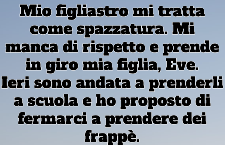 Mio figliastro mi tratta come spazzatura. Mi manca di rispetto e prende in giro mia figlia, Eve.