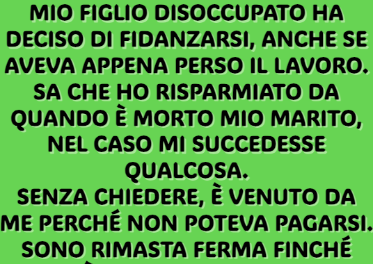 Mio figlio disoccupato ha deciso di fidanzarsi, anche se aveva appena perso il lavoro. Sa che ho risparmiato da quando è morto mio marito, nel caso mi succedesse qualcosa.
