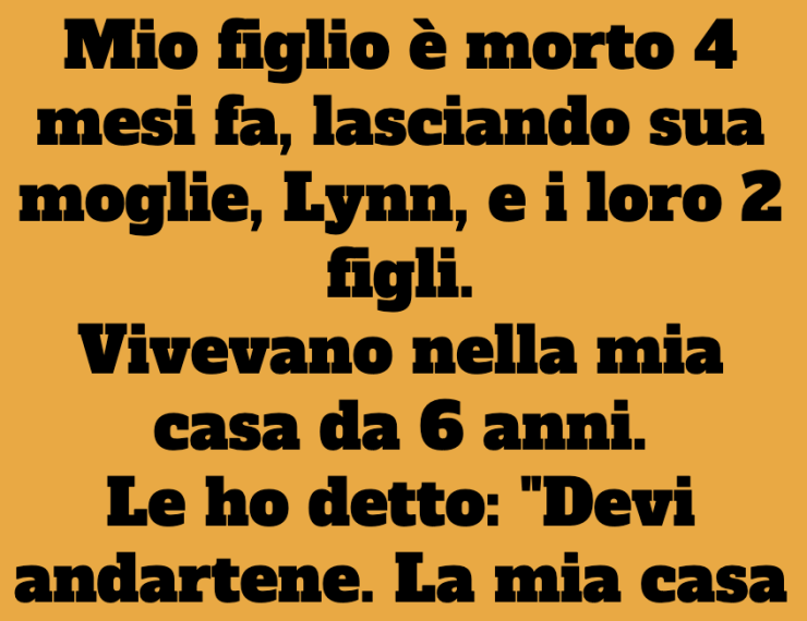Lynn non disse molto quelle prime settimane. Sembrava stordita. Non riuscivo a capire se fosse in lutto o solo disorientata. Ma alla fine, la realtà colpì. Non eravamo più una famiglia di cinque persone. Eravamo una nonna in lutto e una nuora vedova con due figli.