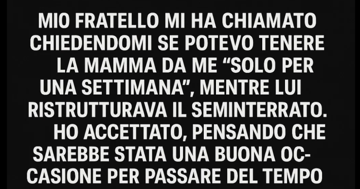 Mio fratello mi ha chiamato chiedendomi se potevo tenere la mamma “solo per una settimana”, mentre ristrutturava il seminterrato. Ho accettato, pensando che sarebbe stata una buona occasione per rafforzare il nostro legame.