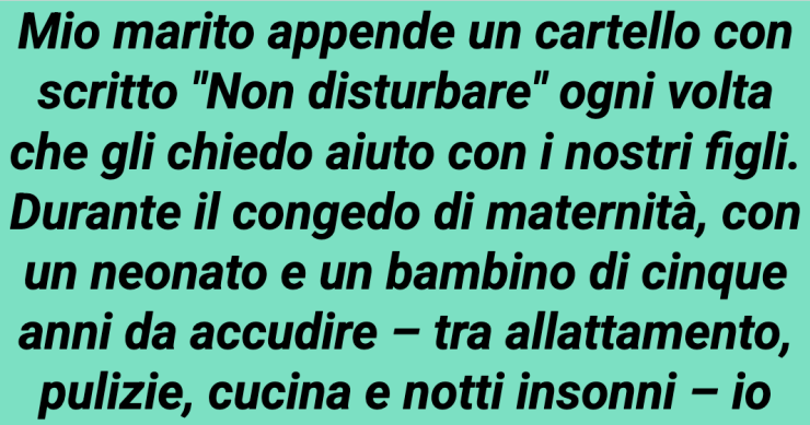 Durante il mio congedo di maternità – con un neonato da allattare, un bambino di cinque anni da gestire, la casa da pulire, i pasti da preparare e pochissime ore di sonno – mio marito Rick passava le giornate guardando YouTube con le cuffie antirumore. Sulla porta del suo studio, sempre chiusa, campeggiava un cartello fisso: