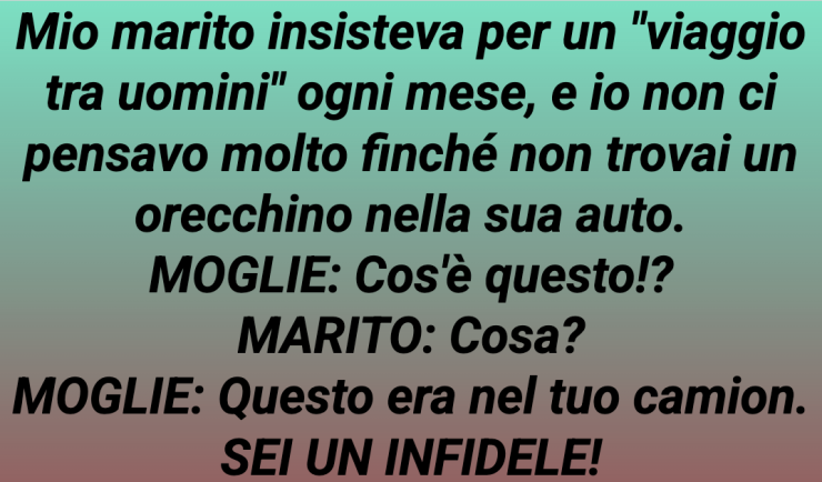 Mio marito insisteva per un “viaggio tra ragazzi” ogni mese, e non ci ho mai pensato fino a quando ho trovato un orecchino nella sua auto