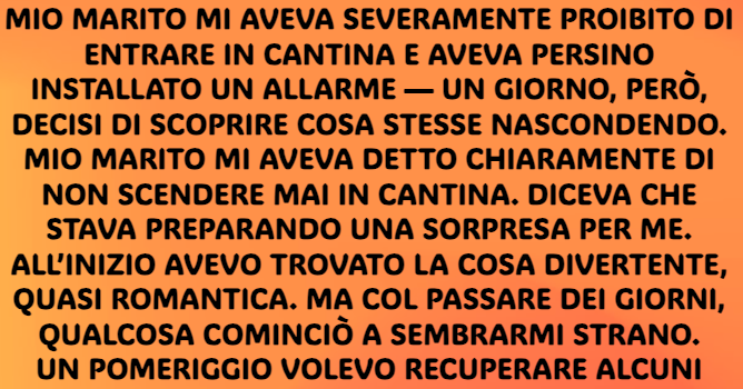 Mio marito mi aveva severamente vietato di scendere in cantina. Diceva che stava lavorando a una sorpresa per me. All’inizio trovai la cosa tenera, quasi divertente. Ma col tempo… qualcosa cominciò a sembrarmi strano.