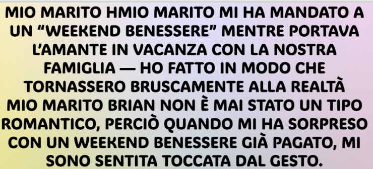 Il cuore mi è crollato. Il weekend benessere era stato una messinscena. Mi aveva mandata via per poter ostentare la sua amante durante la vacanza con la nostra famiglia.