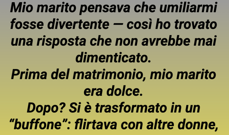 Ci ho provato. Per anni. Ma quella volta è stato diverso. Qualcosa dentro di me è cambiato — forse si è spezzato. Ho capito che se non riprendevo in mano la mia storia, sarei rimasta la sua buffona per sempre.