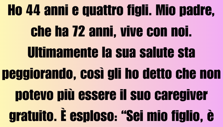 Ho 44 anni e ho quattro figli. Mio padre, che ha 72 anni, vive con noi. Negli ultimi tempi, la sua salute è peggiorata, così gli ho detto che non potevo essere la sua badante gratuita. Lui è esploso: “Sei mio figlio, è tuo dovere!” Più tardi, ho ricevuto un’email scioccante con un documento allegato. Mi sono bloccata quando ho letto…