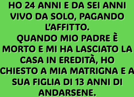 Quando mio padre è morto e mi ha lasciato la casa in eredità, ho chiesto a mia matrigna e a sua figlia di 13 anni di andarsene.
