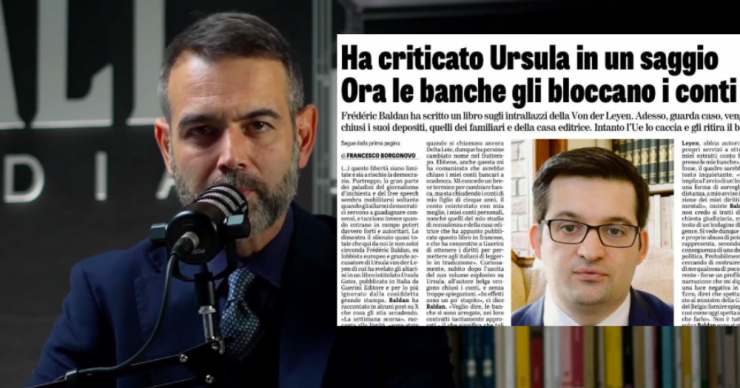 Pochi giorni fa, Frédéric Baldan, lobbista belga nel settore aeronautico ed ex consulente accreditato presso la Commissione Europea, si è presentato presso il nostro studio per un’intervista con Marcello Foa, trasmessa in diretta su Byoblu. Durante l’incontro, Baldan ha illustrato i contenuti e le denunce contenute nel suo libro, “Ursula Gates – La von der Leyen e il potere delle lobby a Bruxelles”. A seguito di tali denunce, Baldan ha subito la chiusura di tutti i suoi conti correnti bancari.