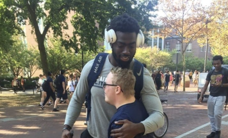 Fa parte del programma per ragazzi con bisogni speciali della nostra scuola superiore. L’avevo incontrato qualche volta durante eventi della comunità. È la persona più dolce che abbia mai conosciuto. Mi ha sempre chiamato il suo “eroe”, che mi è sempre sembrato un po’ esagerato per uno che aveva solo giocato a livello semi-professionale prima di strapparsi il legamento crociato.