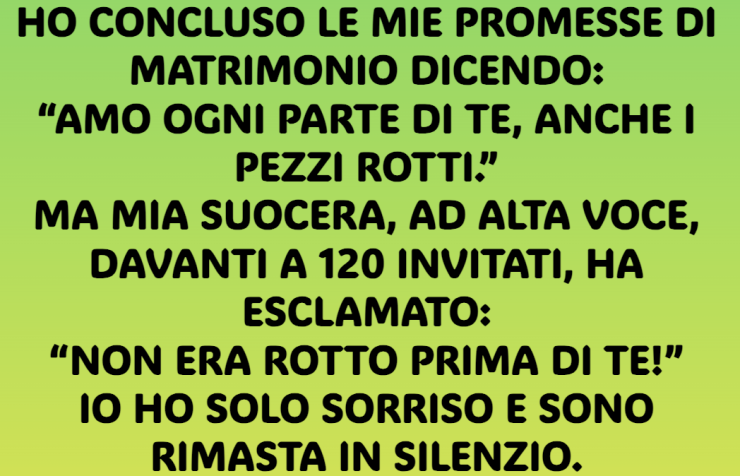 Ma mia suocera, ad alta voce, davanti a 120 invitati, ha esclamato: