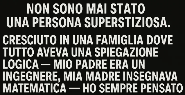 Non sono mai stato una persona superstiziosa. Cresciuto in una famiglia dove tutto aveva una spiegazione logica — mio padre era un ingegnere, mia madre insegnava matematica — ho sempre pensato che il mondo funzionasse su cause ed effetti, su leggi precise e prevedibili. Eppure, da tre settimane, ogni notte, succede qualcosa che non riesco a spiegare.