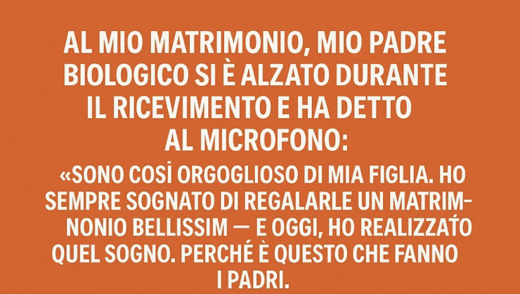 Al mio matrimonio, mio padre biologico si è alzato durante il ricevimento e ha detto al microfono: