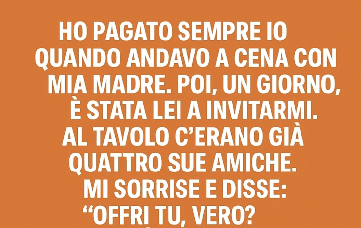 Ho sempre pagato io quando andavo a cena con mia madre. Poi, un giorno, è stata lei a invitarmi. Al tavolo c’erano già quattro sue amiche. Mi sorrise e disse: