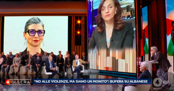 Si è verificato un acceso scambio di opinioni tra Paolo Del Debbio e Paolo Cento durante la trasmissione “4 di Sera”, in onda nell’access prime time di Rete 4.  L’argomento centrale del dibattito è stato nuovamente Francesca Albanese, relatrice speciale delle Nazioni Unite sui territori occupati in Palestina, che ha recentemente suscitato scalpore per le sue controverse dichiarazioni relative all’irruzione degli antagonisti rossi nella redazione de La Stampa, avvenuta venerdì a Torino.