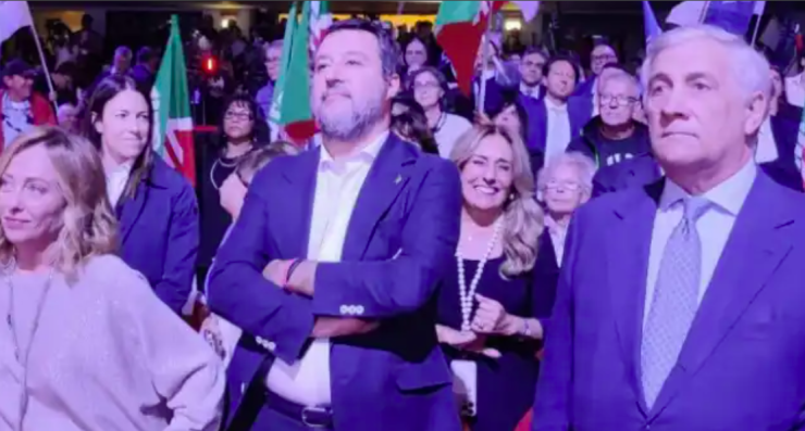 Nella giornata di ieri, i tre membri del governo sono apparsi in pubblico su un palco, circondati da un dispositivo di sicurezza notevolmente potenziato rispetto al solito. Almeno sei agenti erano presenti intorno a Giorgia Meloni, mentre un settimo agente portava una valigetta nera contenente un telo antiproiettile, pronto per ogni eventualità.