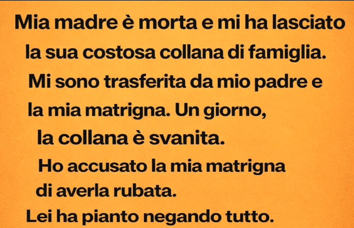 «L’hai presa tu,» urlai. «Era l’unica cosa che mi restava di lei, e tu l’hai rubata!»