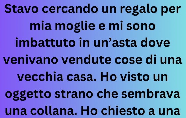 Cercavo un regalo per mia moglie quando mi sono imbattuto in un’asta di oggetti provenienti da una vecchia casa. Ho visto un oggetto strano che sembrava una collana. Ho chiesto a una signora anziana quanto costasse e lei ha risposto: