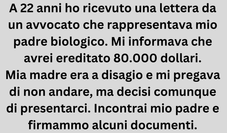A 22 anni ho ricevuto una lettera da un avvocato che rappresentava mio padre biologico. Diceva che avrei ereditato 80.000 dollari.