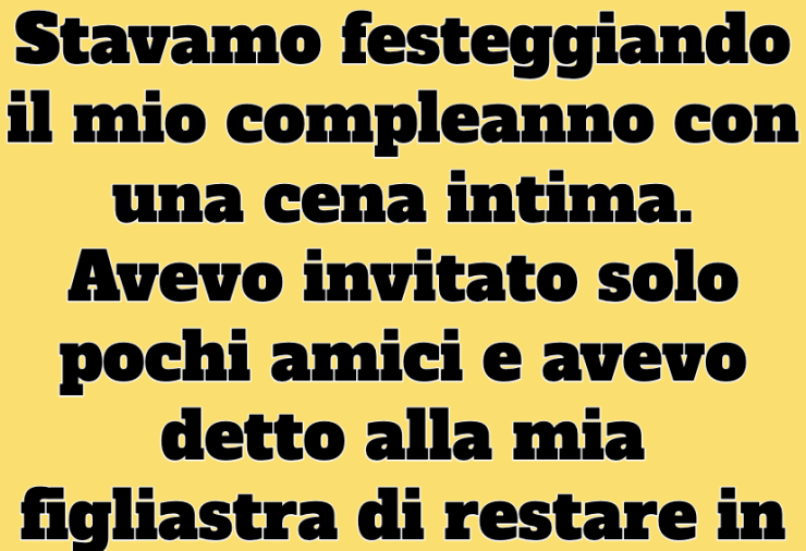 Stavamo festeggiando il mio compleanno con una cena intima. Avevo invitato solo pochi amici e avevo detto alla mia figliastra di restare in camera sua. Ma all’improvviso è comparsa, mi ha superato senza salutarmi e ha detto ad alta voce a mio marito: