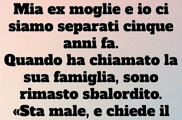 Mia ex moglie e io ci siamo separati cinque anni fa. Quando ha squillato il telefono e la sua famiglia mi ha contattato, sono rimasto senza parole. «È malata, e sta chiedendo il tuo aiuto per suo figlio» ha detto sua madre. Non le dovevo niente. Poi suo fratello ha aggiunto: «Se te ne vai adesso, te ne pentirai per tutta la vita.»