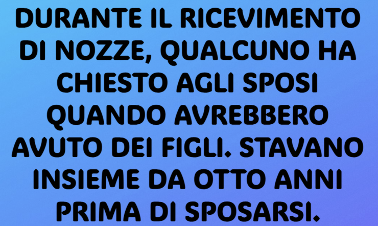 Durante il ricevimento di nozze, qualcuno chiese agli sposi quando avrebbero avuto dei figli. Stavano insieme da otto anni prima di sposarsi.