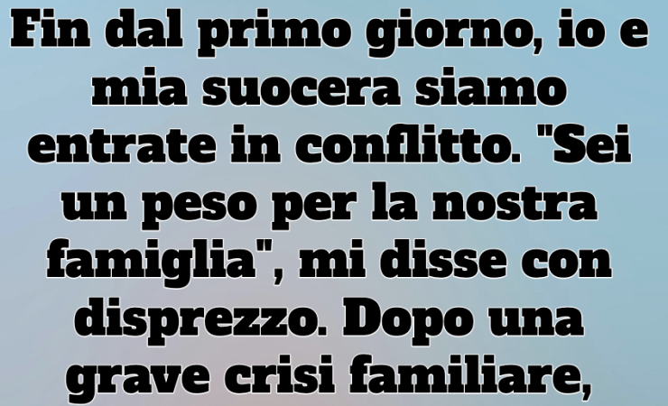 Fin dal primo giorno, io e mia suocera siamo entrate in conflitto. “Sei un peso per la nostra famiglia”, mi disse con disprezzo. Dopo una grave crisi familiare, decisi di prendermi una pausa e andai a vivere con mia sorella in un’altra città. Una settimana dopo, mia suocera mi inviò un messaggio scioccante: