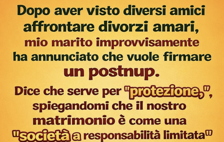 Dopo aver visto diversi amici affrontare divorzi amari, mio marito ha improvvisamente annunciato di voler firmare un postnup — un accordo post-matrimoniale.
