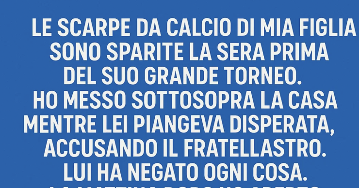 Le scarpe da calcio di mia figlia sono scomparse la sera prima del suo grande torneo. Ho messo la casa sottosopra mentre lei piangeva, accusando il fratellastro. Lui negava tutto.