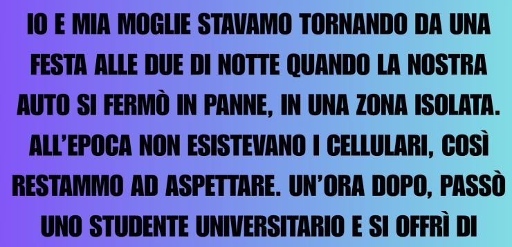Mia moglie provò a dargli dei soldi per il disturbo, ma lui rifiutò con un sorriso calmo: “Felice di aiutarvi.”