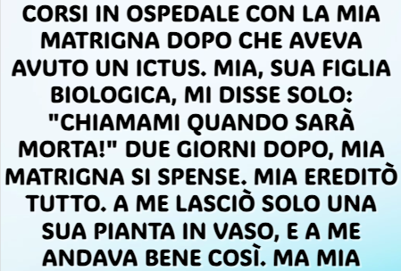 Non provai rabbia. Non cercavo davvero il suo denaro. Quella pianta era rimasta per anni nell’angolo del salotto. Io l’avevo annaffiata, potata, le avevo parlato nelle notti più sole. Sembrava quasi… giusto così.