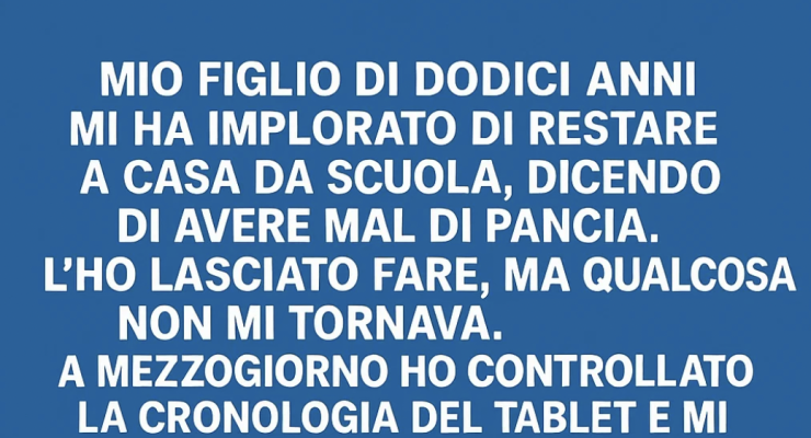 Mio figlio di dodici anni mi ha supplicato di restare a casa da scuola, dicendo di avere mal di stomaco. Ho acconsentito, ma qualcosa non mi tornava.