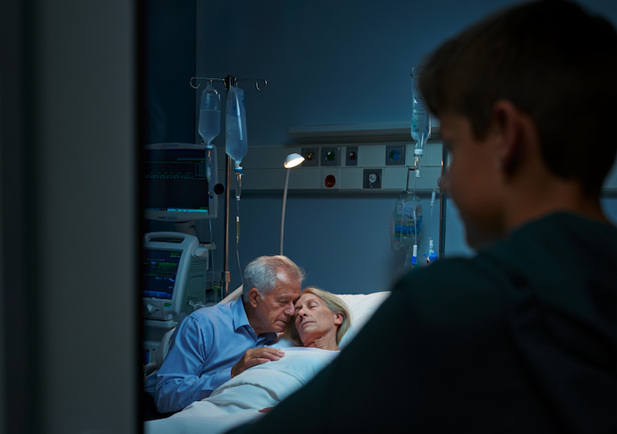 Non gli importava dei macchinari che emettevano suoni, dell’odore sterile, né della scomodità di quel letto d’ospedale. Non gli importava che l’orario delle visite fosse tecnicamente finito. Sapeva solo una cosa: