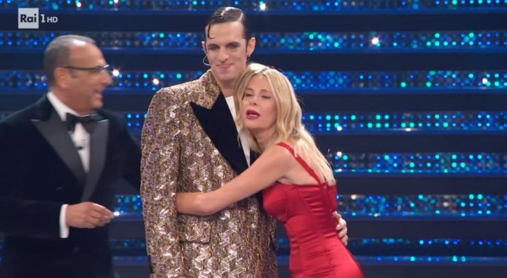 “Sarà stata l’emozione di tornare su quel palco dopo 25 anni, ma Alessia Marcuzzi ha regalato momenti di puro imbarazzo non solo a Carlo Conti. ‘Ho bisogno di contatto fisico per sentirmi a casa’, ha detto abbracciando Conti. Non contenta, è scesa in platea per abbracciare mezza famiglia, compresa la zia Mara Venier. Poi si è lanciata su Achille Lauro (e chi può biasimarla?), ha dichiarato il suo interesse passato per Tormento e ha chiuso con un inciampo sulla scalinata. Da quel punto di vista, però, l’abito era impeccabile.”