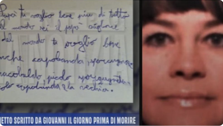 Un biglietto pieno d’amore, scritto con la semplicità e la dolcezza di un bambino di nove anni, è diventato oggi il simbolo di una tragedia che ha sconvolto Muggia, in provincia di Trieste. Il messaggio, mostrato nel programma di Canale 5 “Dentro la Notizia”, condotto da Gianluigi Nuzzi, era stato scritto dal piccolo alla vigilia della sua morte e rivolto al padre. Poche righe, colme di affetto e innocenza, che oggi assumono un significato struggente.
