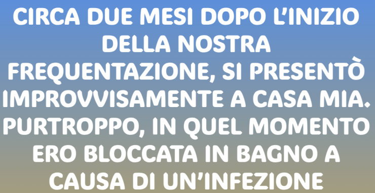 Circa due mesi dopo l’inizio della nostra frequentazione, si presentò all’improvviso a casa mia.