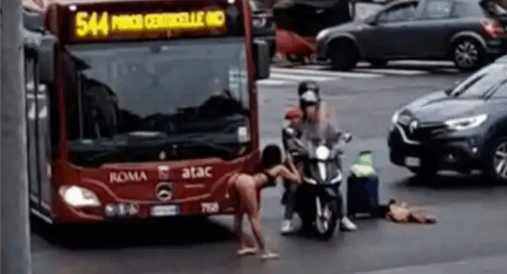 Si spoglia all’improvviso in un incrocio a Roma: traffico bloccato e stupore generale