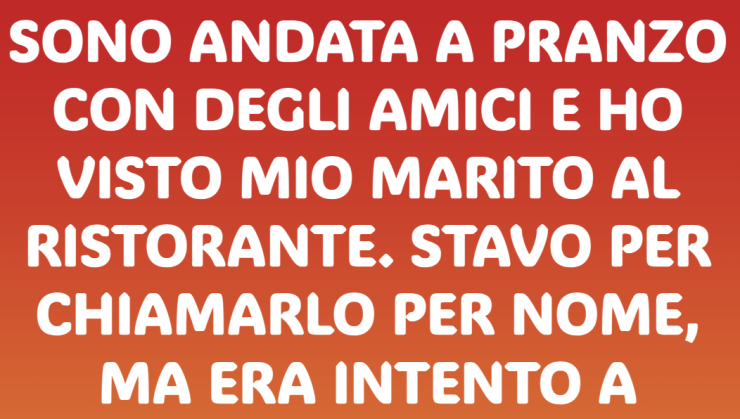 Ero a pranzo con Ruth e Indira, quando ho visto mio marito al ristorante. Stavo per chiamarlo, ma lui fissava il telefono, così mi sono fermata a guardarlo. Sorrideva. Scriveva. Poi ha alzato lo sguardo, come se stesse aspettando qualcuno.