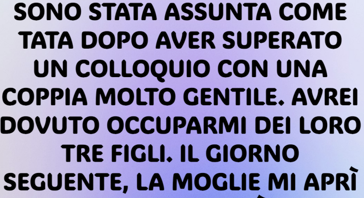 Dopo un colloquio con una coppia affabile, sono stata assunta come tata. Avrei dovuto occuparmi dei loro tre figli. Il giorno successivo, la moglie mi aprì la porta, mi bloccò in un angolo e mi sussurrò: