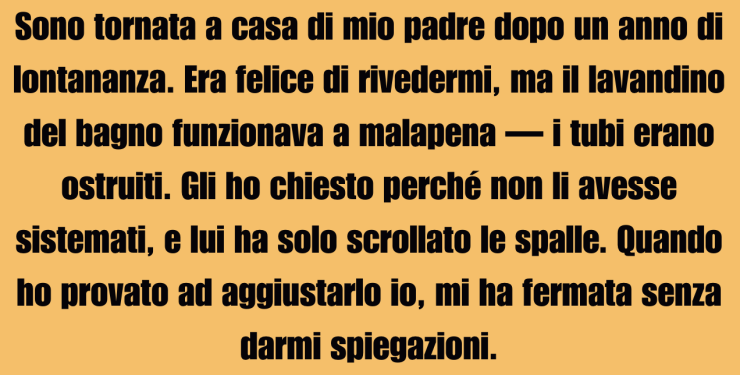 Dopo un anno lontana, sono tornata a casa di mio padre. Era contento di rivedermi, ma il lavandino del bagno funzionava a malapena: i tubi erano intasati.