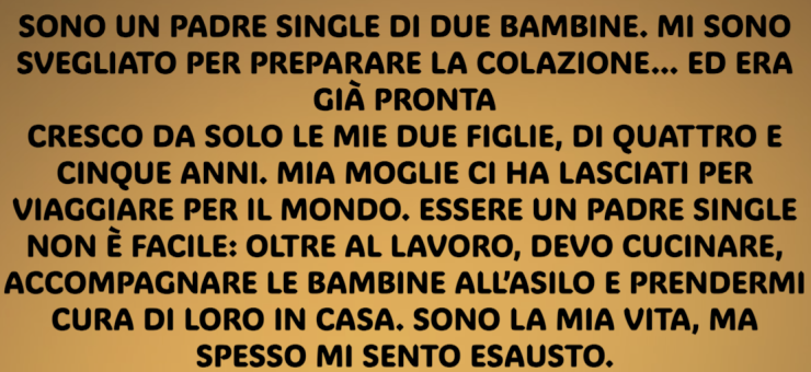 L’altro giorno mi sono alzato come al solito, ho vestito le mie figlie e sono andato in cucina per versare il latte nel loro porridge. Ma, con mia grande sorpresa, ho trovato tre piatti di pancake freschi, con marmellata e frutta, già pronti sul tavolo. In allarme, ho controllato tutta la casa cercando eventuali intrusi, poi ho chiamato i miei parenti per chiedere se qualcuno fosse passato quella mattina.