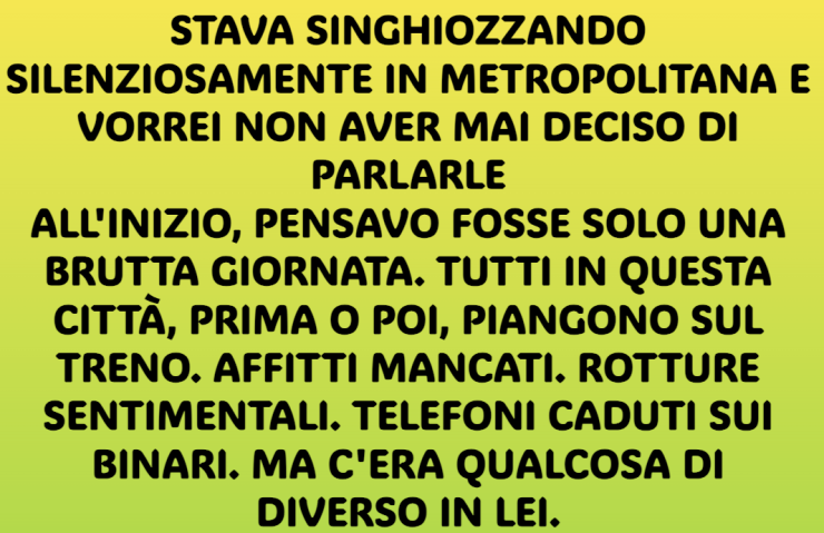 La domanda rimase sospesa nell’aria, troppo impegnativa per una conversazione in metropolitana. Ma qualcosa nella sua espressione mi diceva che non la stava chiedendo solo a me. La stava chiedendo a se stessa.