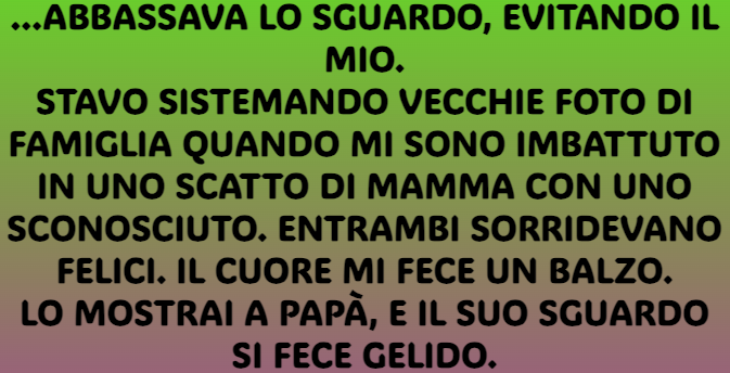 Non sapevo cosa provare—tradimento, tristezza, forse perfino senso di colpa per aver scavato nel passato.