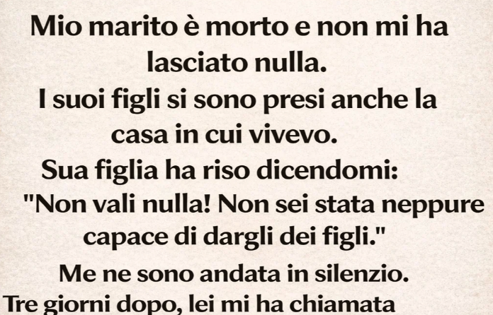 Mio marito è morto e non mi ha lasciato nulla. Neanche un dollaro, un ricordo, un oggetto personale. Nemmeno la casa in cui avevamo vissuto per dodici anni.