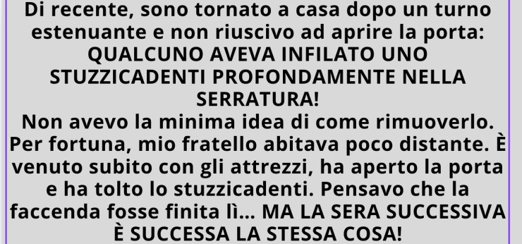 Per fortuna, mio fratello viveva poco distante. È venuto con i suoi attrezzi, ha aperto la porta e rimosso lo stuzzicadenti. Credevo che la storia fosse finita lì… ma la sera successiva accadde di nuovo.