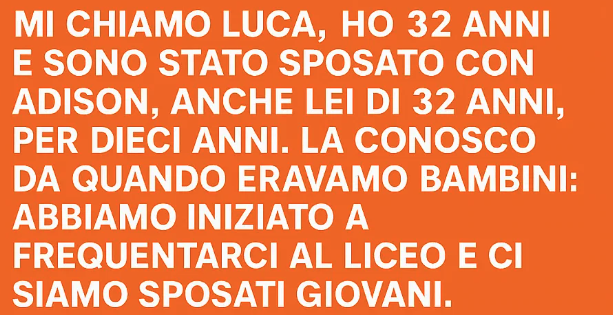 Mi chiamo Luca, ho 32 anni e sono stato sposato con Adison, anche lei di 32 anni, per dieci anni.