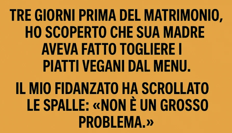 Tre giorni prima delle nozze, ho scoperto che sua madre aveva fatto rimuovere dal menu tutte le portate vegane.
