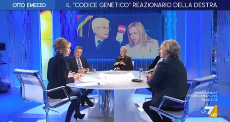 L’autore intende approfondire le ragioni alla base della recente esposizione dello scandalo dell’autorità per la Privacy, dell’assalto al Quirinale, dei complotti, degli spionaggi e della frequente demonizzazione di magistrati, sindacati, giornalisti e opposizioni, paragonate dalla Presidente del Consiglio Giorgia Meloni ad Hamas. Ci si interroga sul modo in cui questa destra estrema, guidata da Giorgia Meloni, concepisce e gestisce il potere. Tale interrogativo, tuttavia, non si configura come una vera e propria domanda. A “Otto e mezzo” si è assistito al consueto dibattito critico nei confronti di Meloni, ma in questa occasione si è verificato un significativo contrasto tra la conduttrice e Massimo Giannini.